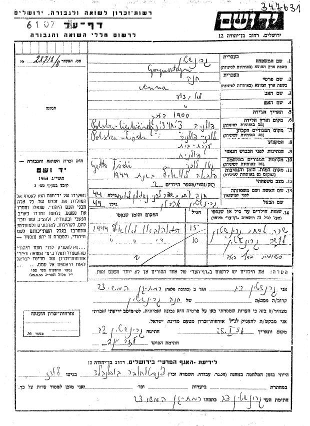 אמי העידה במשפט אייכמן והתמונה שבה היא צולמה ע"י הנריק רוס שנמצאה על חורבות גטו לודז' הוצגה במשפט אייכמן כמוצג משפטי.