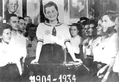 בתמונה זו שצולמה ע"י הצלם הנריק רוס , היא השתתפה ביום הזכרון להרצל וביאליק, נאמה לפני חבריה וחברותיה. דקלמה לפניהם בעל פה את "חזון העצמות היבשות" - כל פרק ל"ז בספר יחזקאל בשלימותו.