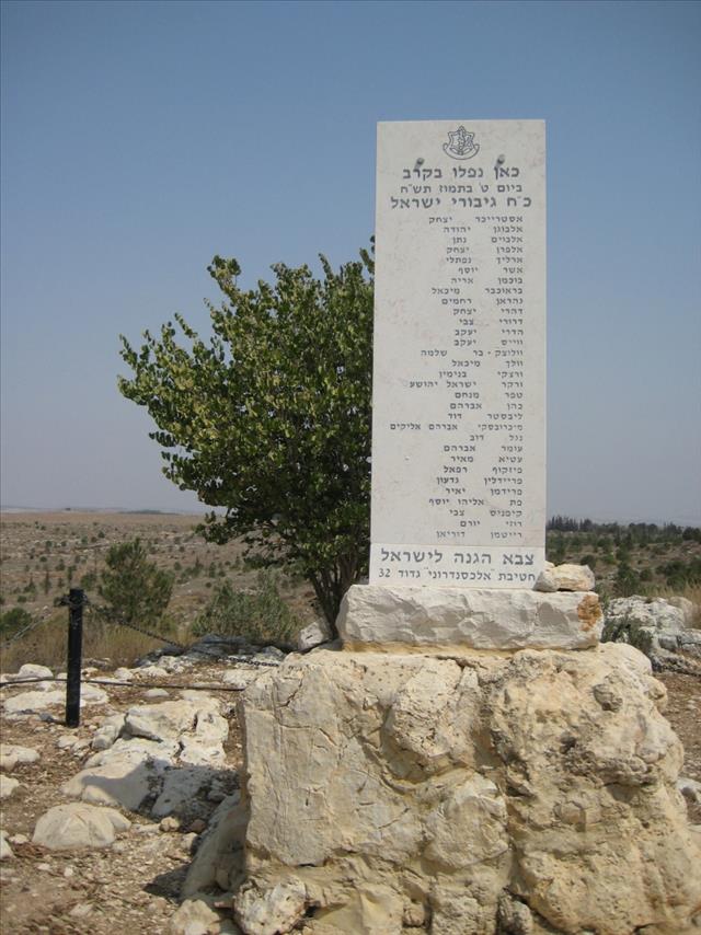מצבה לזכר הנופלים בקרבות קולה במלחמת העצמאות יער גבעת כ"ח |