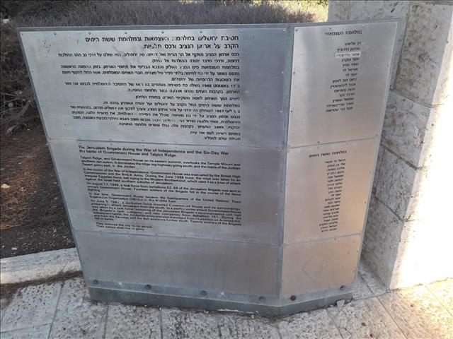 אנדרטה לנופלי חטיבת ירושלים בקרבות על ארמון הנציב במלחמת העצמאות ובמלחמת ששת הימים ירושלים |